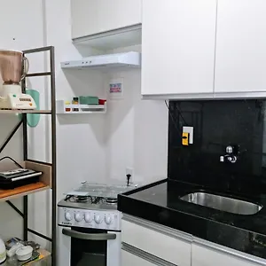 Nestled less than 10 minutes' walk from Praia de Jatiuca, the 44 m² Maceio Ferias Apto Com Varanda Vista Mar Apartment offers a sun deck, a roof-top pool and a garden. There is an equipped kitchenette area with a refrigerator, an oven and kitchenware at this 1-bedroom apartment.